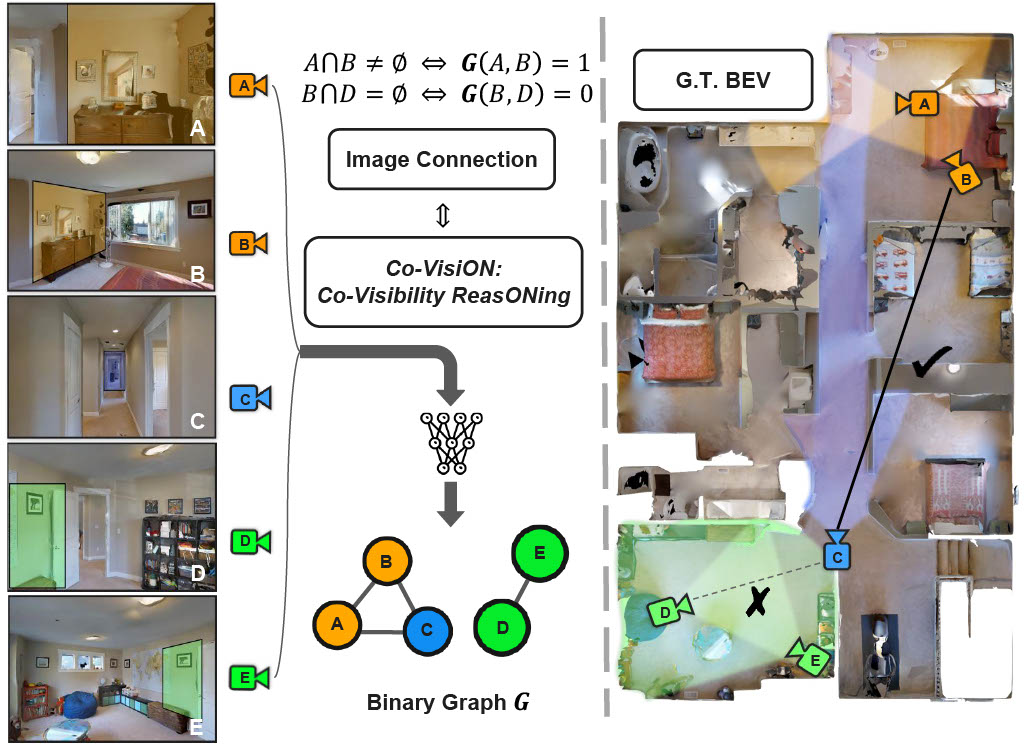 Co-VisiON: Co-Visibility ReasONing on Sparse Image Sets of Indoor Scenes